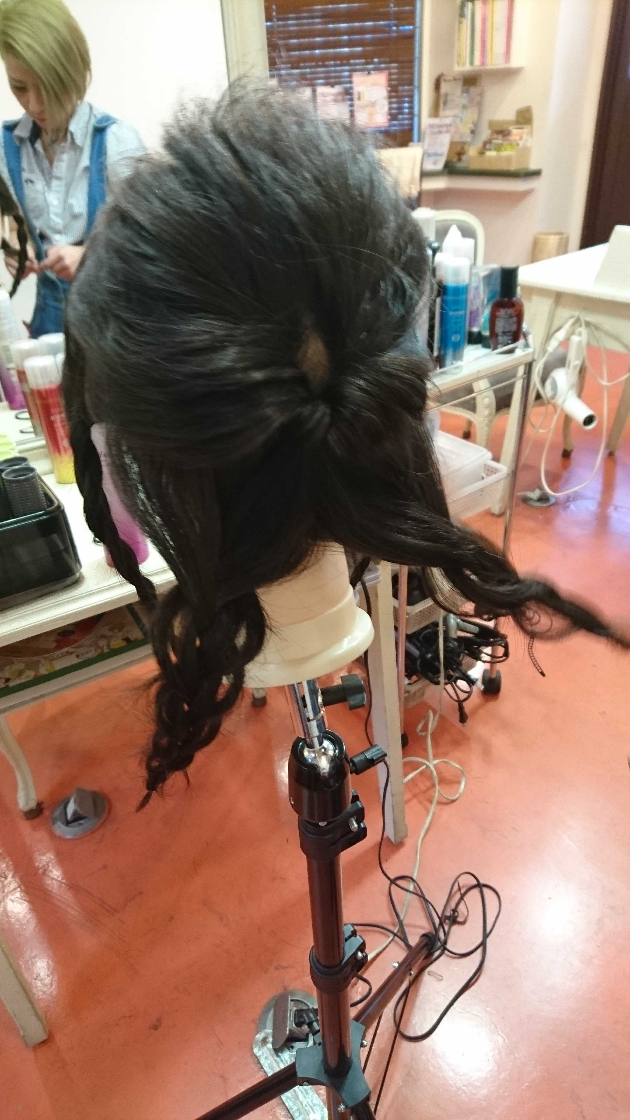 ウィッグなのでわかりにくいですが、人の頭でやると更にかわいくなるんですよ〜♪♪