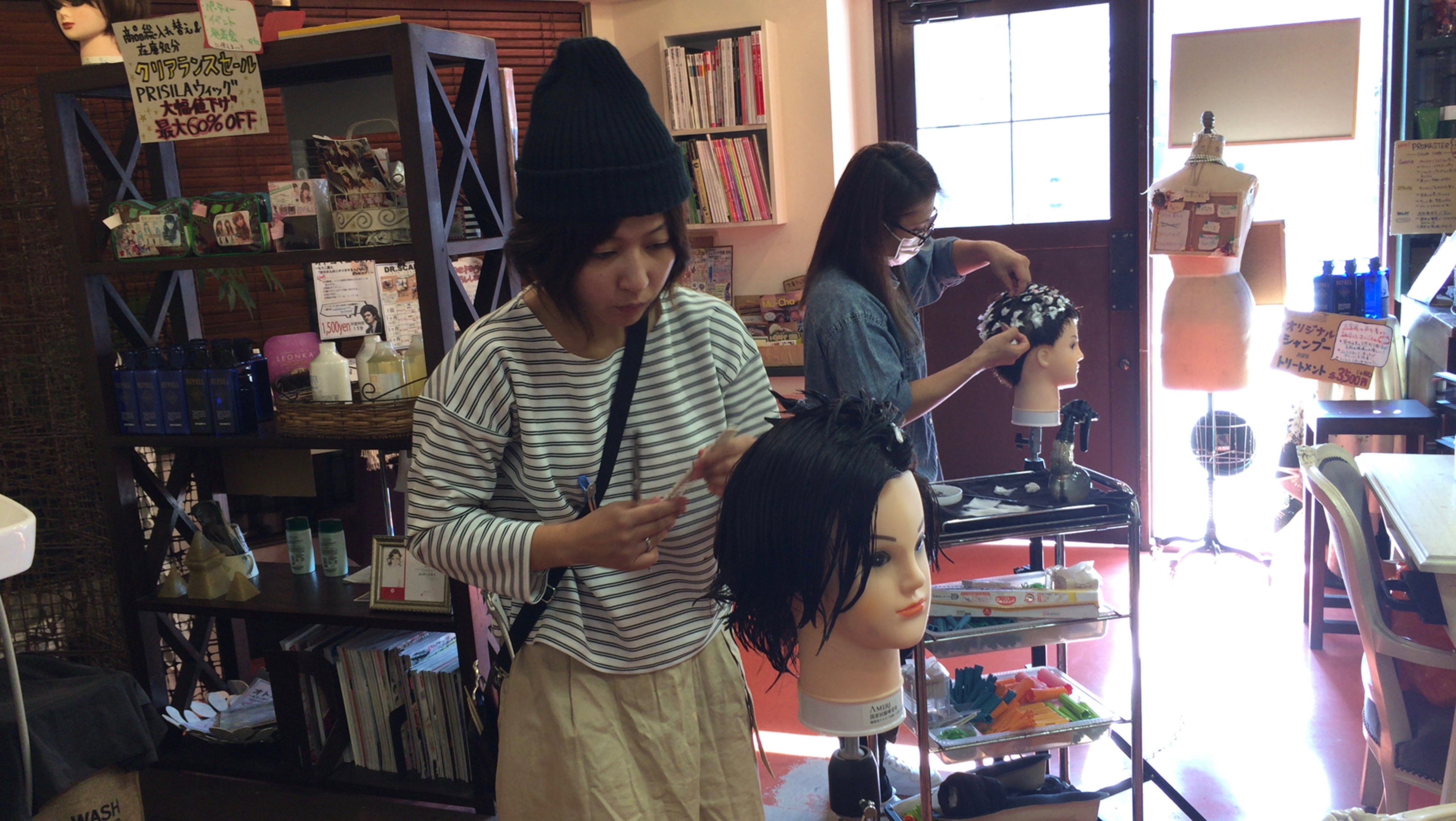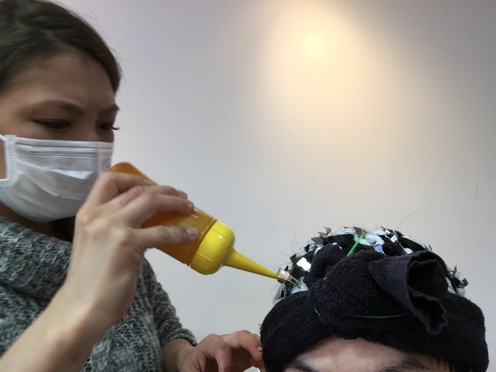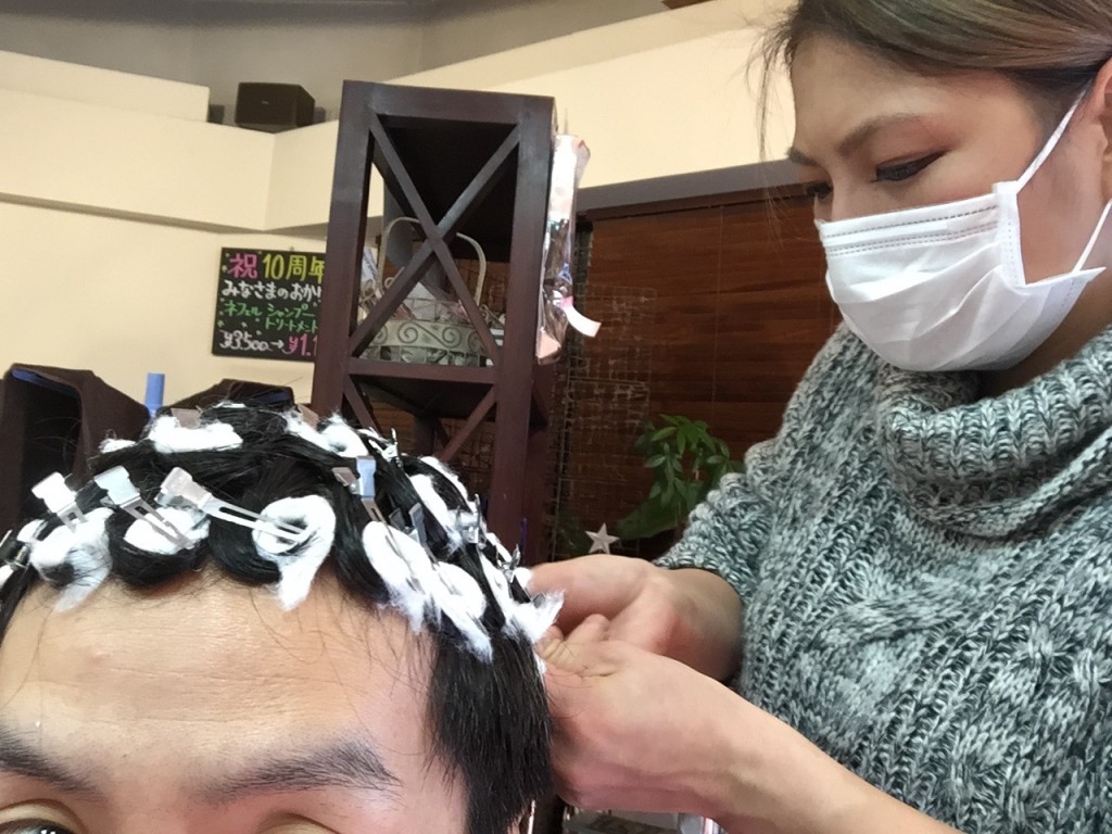 ウィック(人形)での練習はもうしっかりこなしてきたので、今回モデルになってパーマをかけてもらいました!